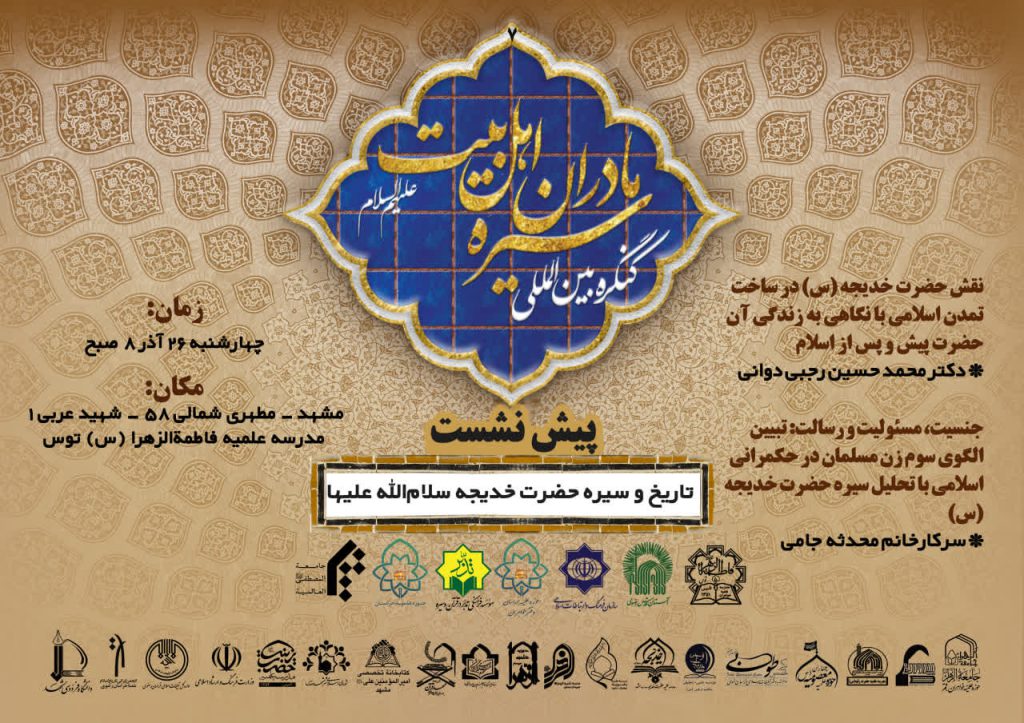 📚 هفتمین پیشنشست 《کنگره بینالمللی سیره مادران اهلبیت علیهم السلام》 بر محور تاریخ و سیره حضرت خدیجه سلامالله علیها، مادر گرامی حضرت زهرا سلام الله علیها، برگزار میشود.